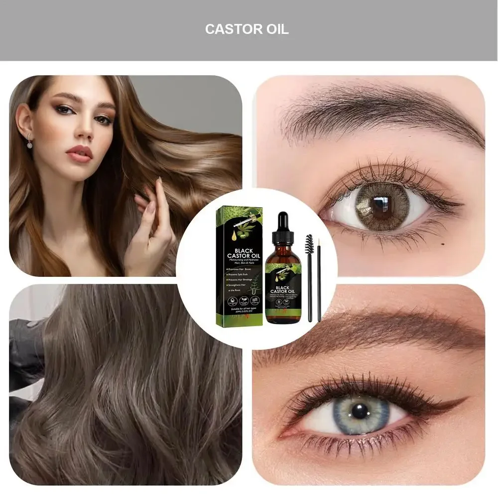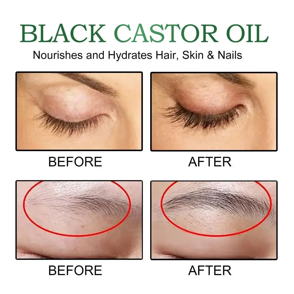 3.Eyelash and Eyebrow Nourishment: Transform your lashes and brows with Black Castor Oil. This natural way to care for your hair promotes fast and safe growth while moisturizing your dry scalp and reducing dandruff. Achieve thicker, longer, and healthier lashes and brows in a very comfortable way.
