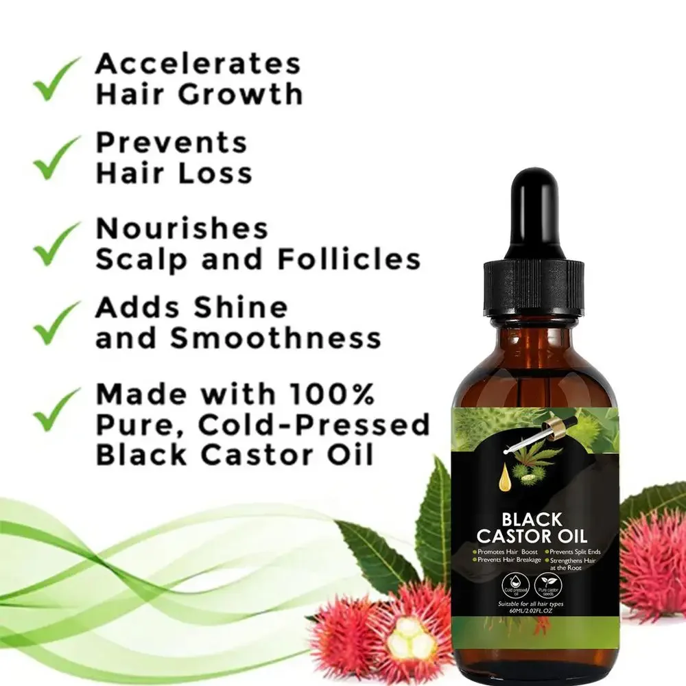 Black Castor Oil for Hair 60ml Moisturizing Hair Oil Care Liquid Jamaican Black Castor Hair Oil Gentle Natural