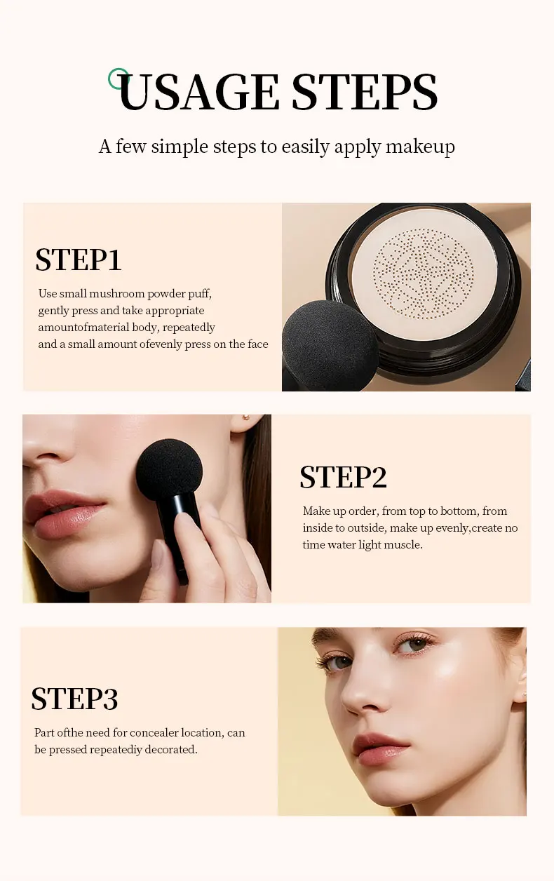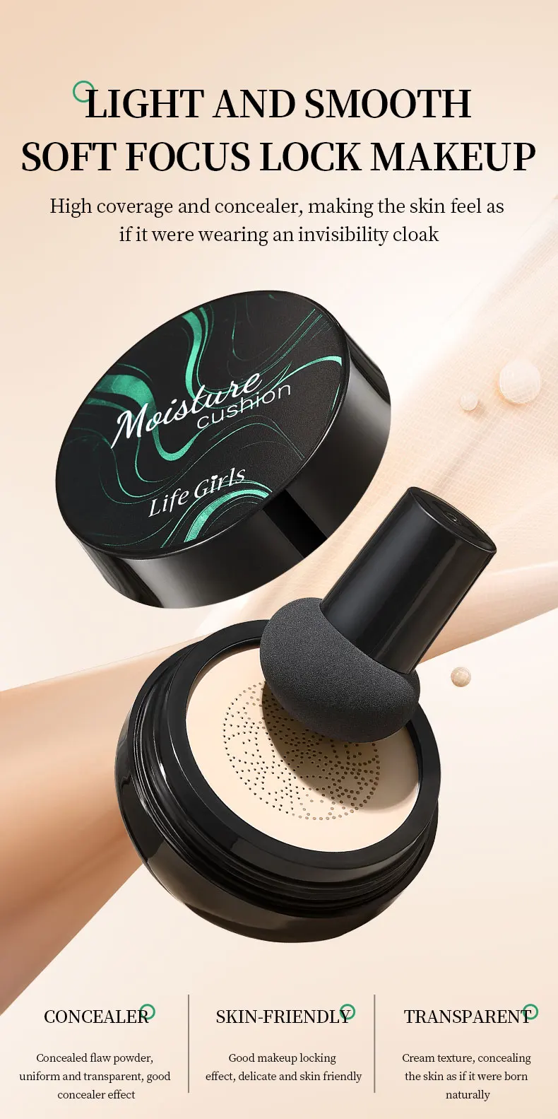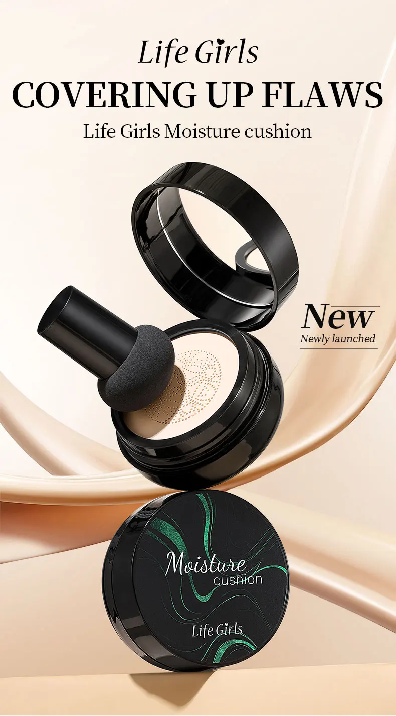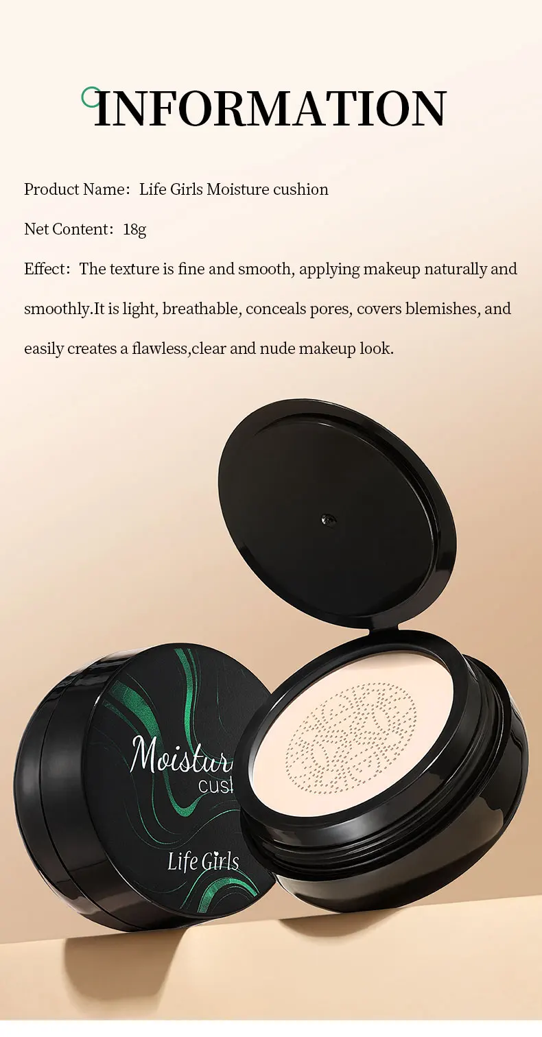 Life Girls Mushroom Moisture Air Cushion Smooth Creamy Texture Foundation Covers Blemishes Creates Flawless Light Base Makeup